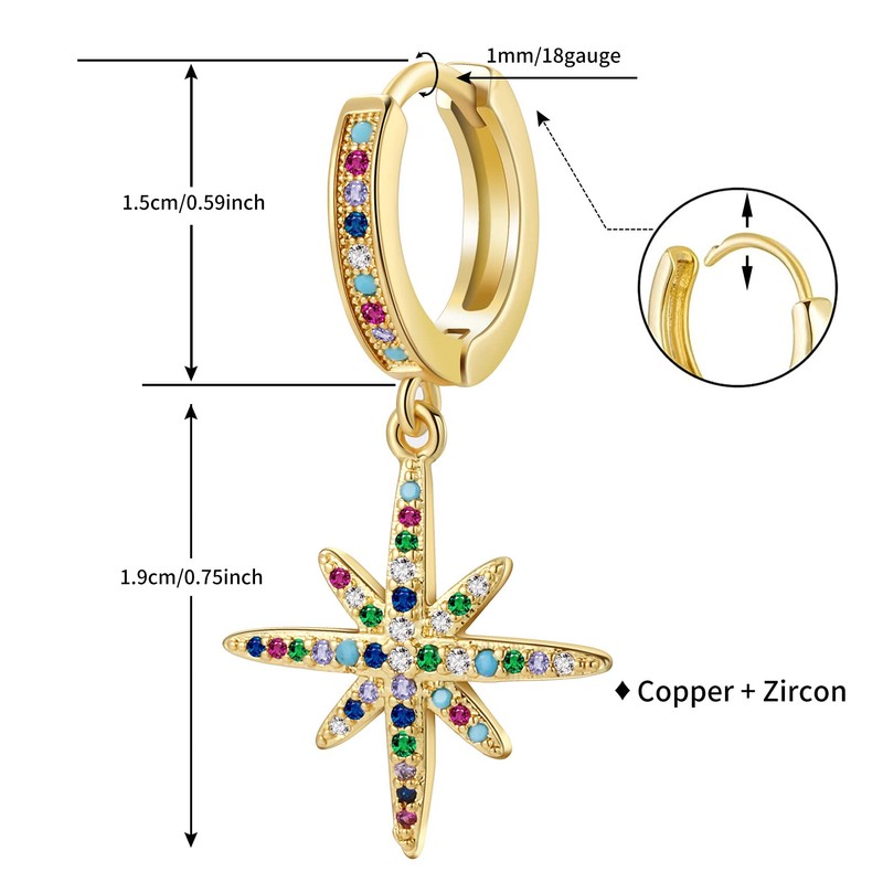 - Material: The material of our earrings is: Copper + Zircon. The earrings are made of zircon. Delicate and lovely earrings. Great for parties and everyday wear. We have Hoop Star Dangle Earrings, Hoop Moon Dangle Earrings, Hoop Butterfly Drop Earrings in our shop. I am sure you will love these small drop earrings.