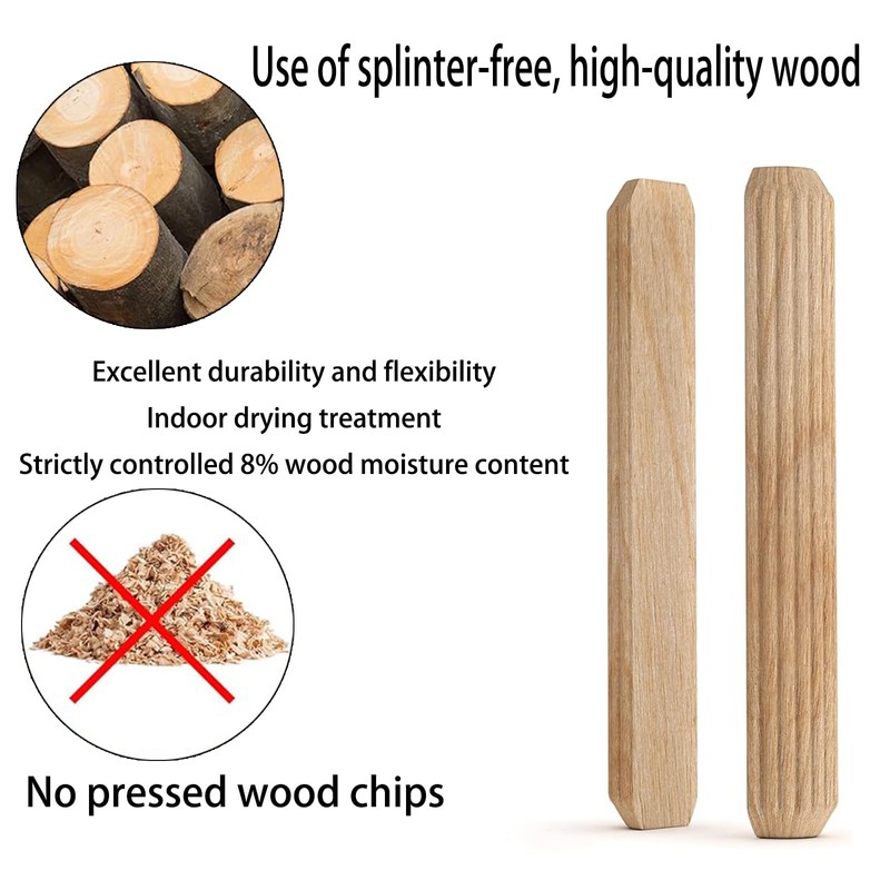 - STABLE DESIGN - The groove design increases the anti-slip ability of the wooden pin, ensures the stability of the connection part, increases the contact area between the glue and the wooden pin, and makes the connection stronger."