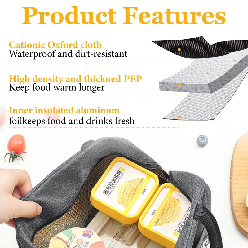 Functions: the insulated lunch bag has a capacity of 7 litres, offers enough space, fits perfectly with your lunch box, snacks, sandwiches and even fruit