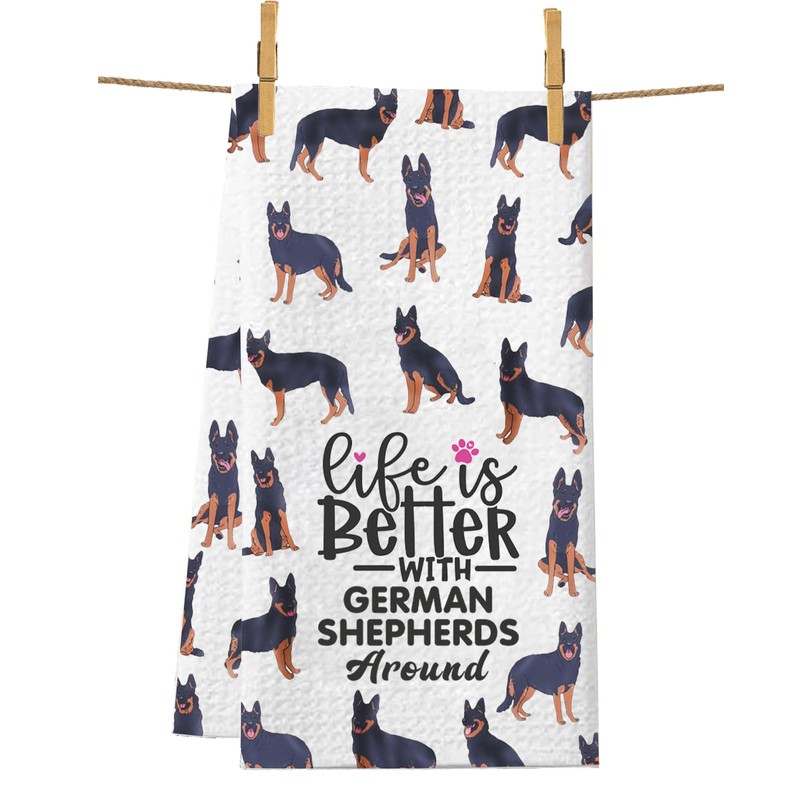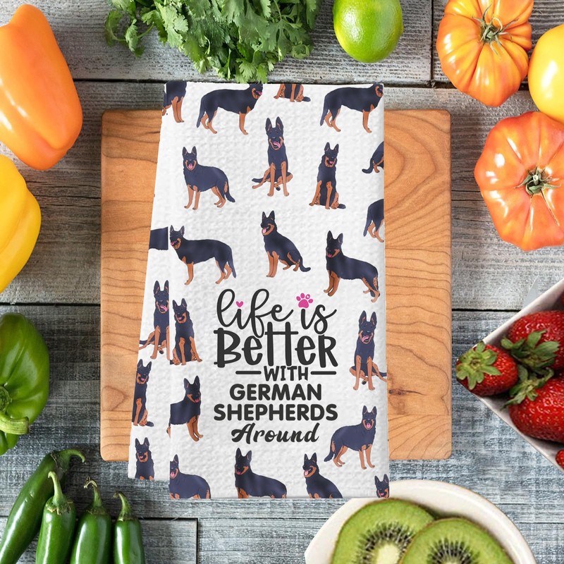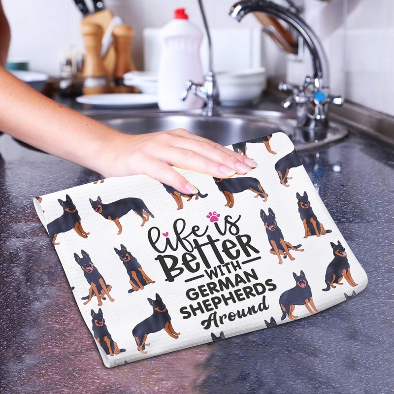 PXTIDY Life Is Better With German Shepherds Around German Shepherd Tea Towel Gift for Dog Lovers