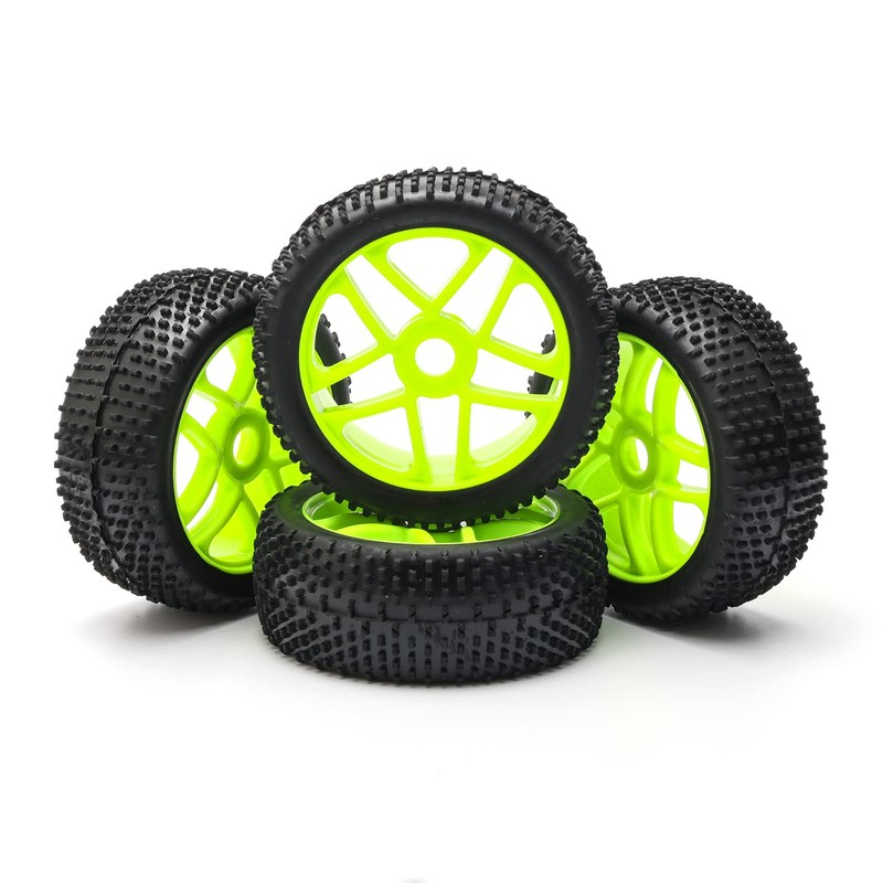 Pxyelec 17mm Wheel Tires, Buggy Rubber Wheel Tyres for 1:8 Scale Off-Road RC Car Green (Pack of 4)
