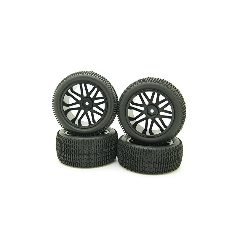 Pxyelec RC 1:10 Off-Road Car Buggy Rubber Tyre Tire & Wheel Rim HEX 12mm Black with foam inserts Pack of 4