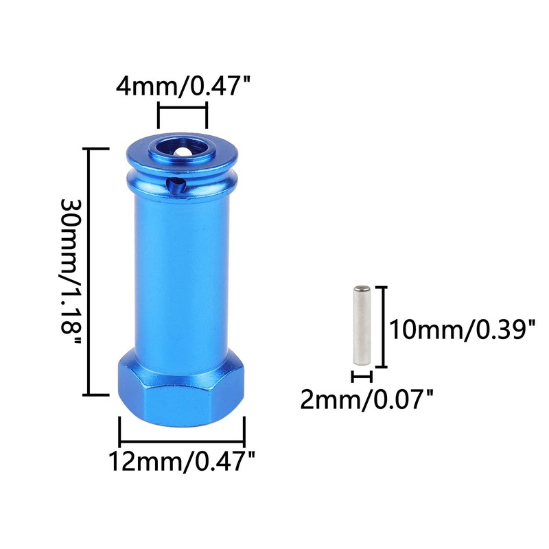 - Package included: 4 x 12mm Hex Adapter, 4 x Screw, 4 x Gasket/Washer, 4 x Rubber Ring. Color: Blue,12mm hex; Hex Hole Diameter:4mm;For Axle Diameter: 5mm.