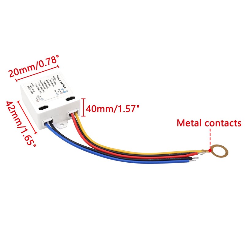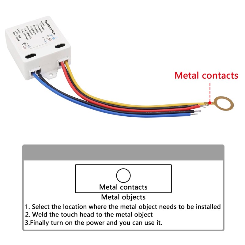 - Wiring: black and red lines connected to 220V input, the other black and blue lines connected to the lamp, the yellow line is the touch signal lines