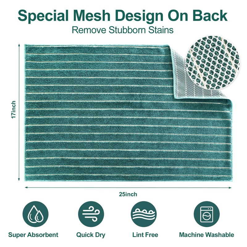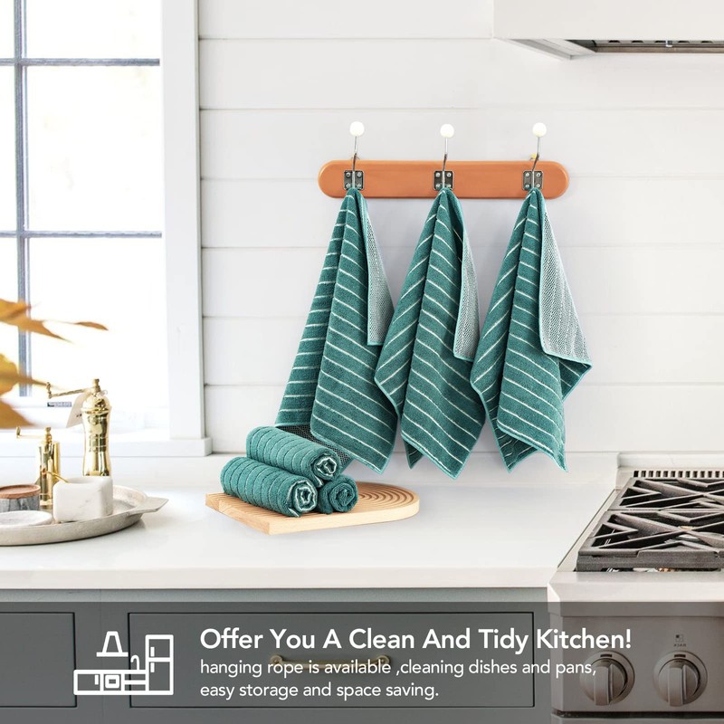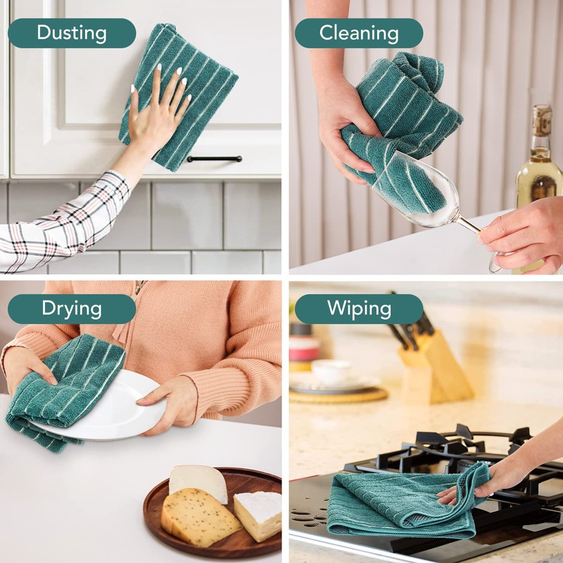 PY HOME & SPORTS Microfiber Kitchen Dish Towels 6 Pack- 17 x 25” Super Absorbent Kitchen Hand Dish Cloths with Upgraded Mesh Design, Lint Free & Quick Drying (Teal)