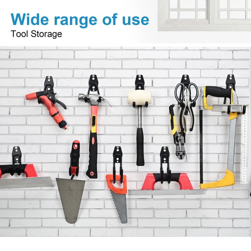 - VERSATILE STORAGE These multi-purpose hooks can hold a variety of items, including shovels, hammers, spades, brooms, garden hoses, cables, garage tools, electrical appliances, ladders and more. Say goodbye to the clutter and welcome an organized space