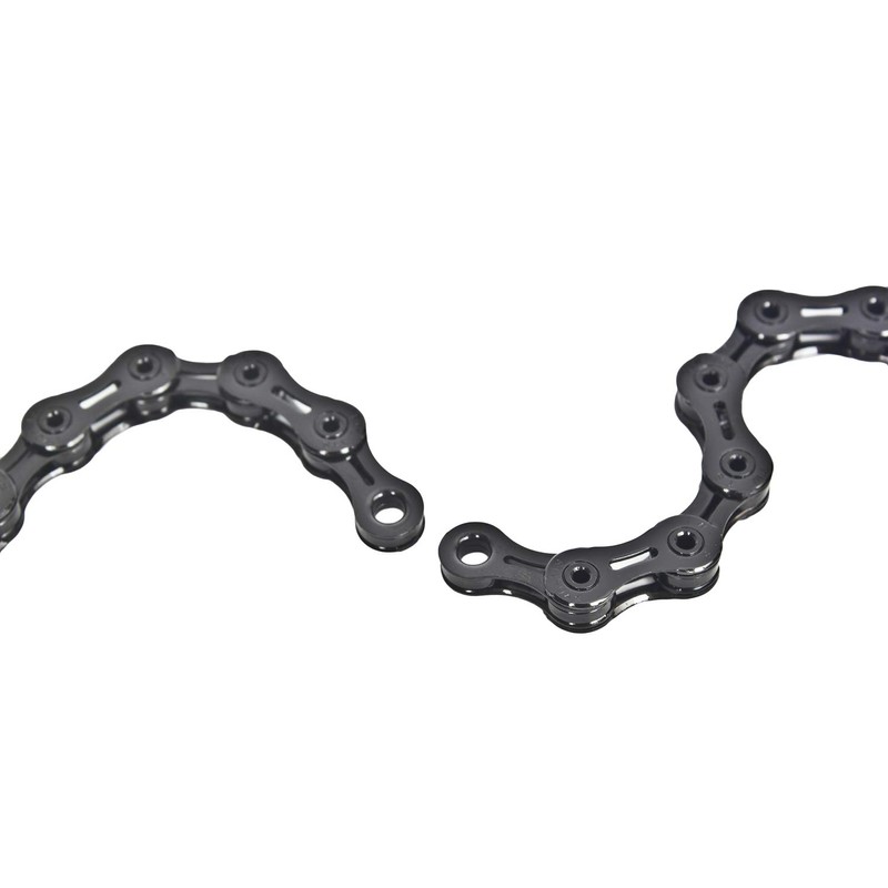 - Features: -Quiet noiseless function -Snap link included. -Its lean construction reduces weight, improves shifting speed and smoothness, and reduces chains stuck -Includes Missing Link - Master Link -Extra stretch proof mushroomed pin -Campagnolo, Shimano & SRAM 11 Speed Compatible -Inner & Outer Plate Chamfering -Bushingless Construction -Hollow pins & plates makes the lightest chains in the world -PVD Coating