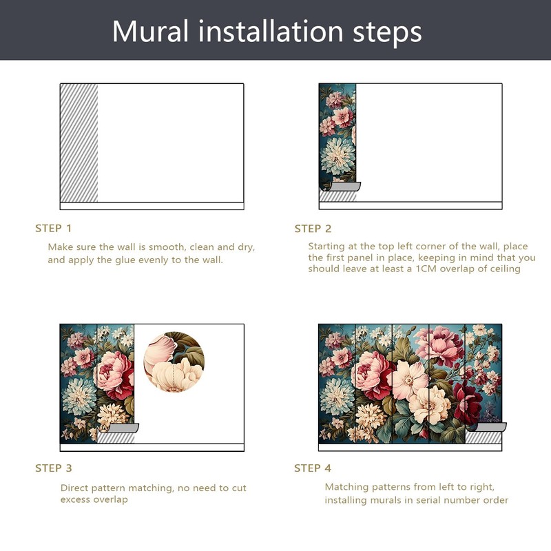 - Easy Installation: Seamless mural wallpaper (product does not contain glue), according to the serial number under the mural, using adhesive can be easily pasted