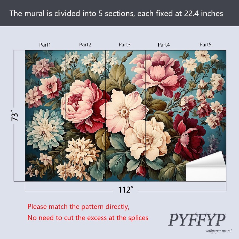 PYFFYP- Pink Vintage Garden Flowers Wallpaper murals for Living Room(Not Peel and Stick)