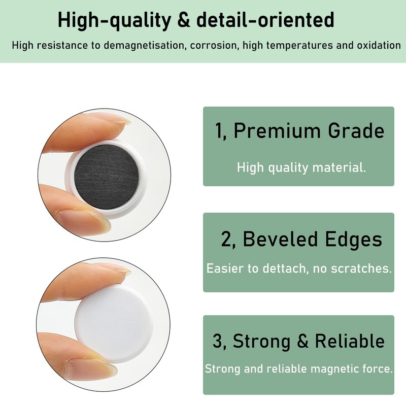 - 【Round magnets - High Quality Materials】The fridge magnet are made of high-quality plastic outer shell and durable magnet inside. The surface of the tiny magnets is matte polished finish, which is resistant to corrosion and oxidation. Their unique design ensures that they can be easily moved and reused without leaving any marks on metal surfaces, such as refrigerator and white board. These magnets cute are reliable and reusable, perfect as classroom supplies