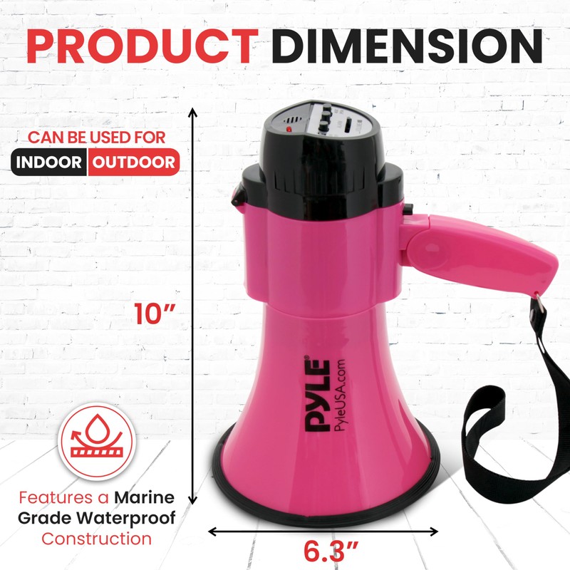 - 30 WATT POWER: The power output of the portable megaphone is 30 watt max. It is battery operated and requires (4) x D batteries. It also has a pink ergonomic pistol grip design and mini lightweight chassis