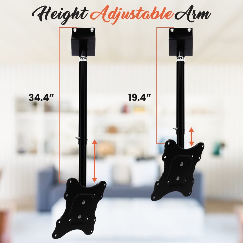 Pyle Adjustable Height TV Ceiling Mount - Swivel and Tilting Vertical VESA Universal Mounting Bracket, Mounts 14 to 42 Inch HDTV, LED, LCD, Plasma, Flat Screen Television Up to 30 KG - Pyle PCTVM15