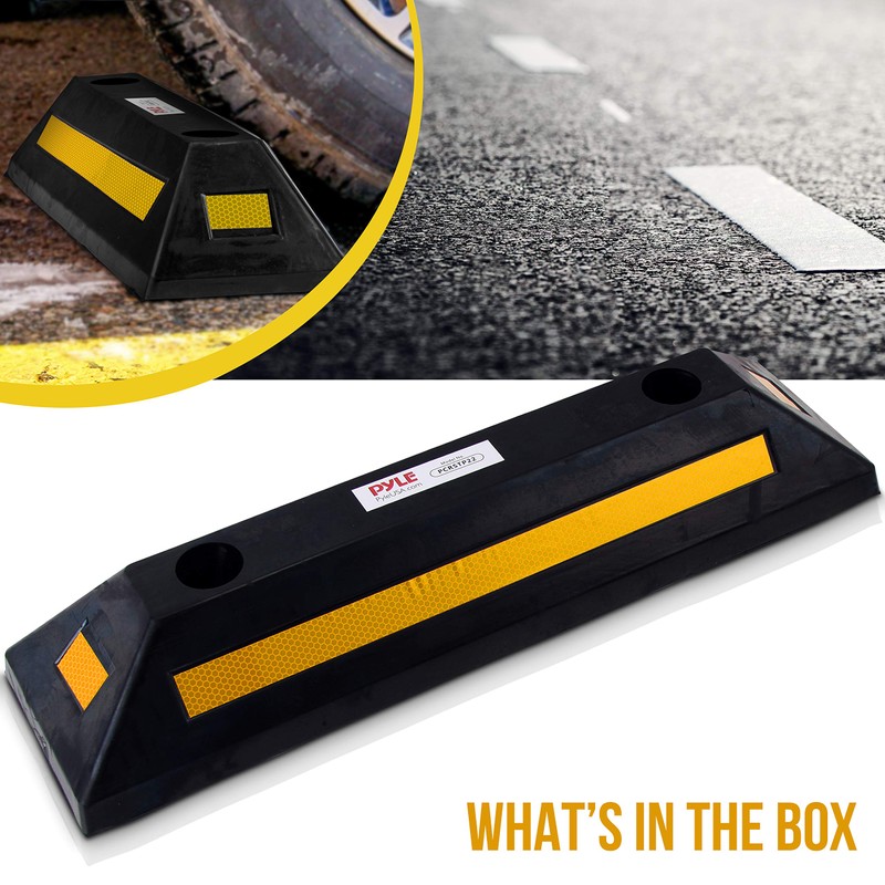 Pyle Curb Garage Vehicle Floor Stopper for Parking Safety 1PC Heavy Duty Rubber Parking Lot Driveway Stopper, For Car Vans Trucks Tire Wheel Guide Block Protect Bumper- Pyle PCRSTP11,Black