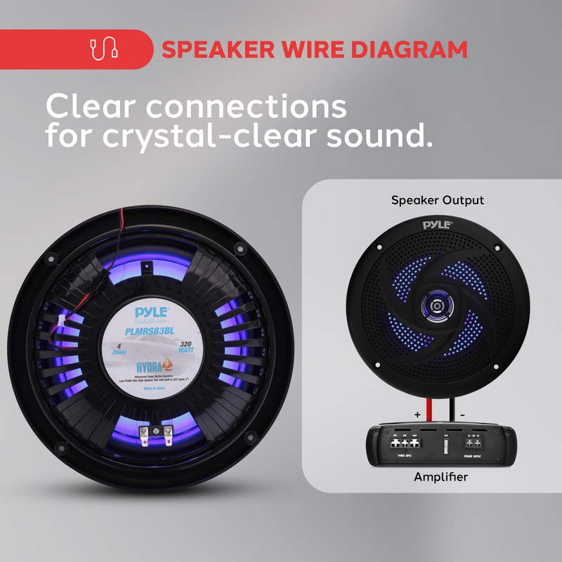 - BLUE LED ILLUMINATION FOR STYLE – Add a touch of style to your boat or vehicle with built-in blue LED lights. These wakeboard speakers not only deliver superior sound but also illuminate your ride, creating an attractive and functional audio setup.