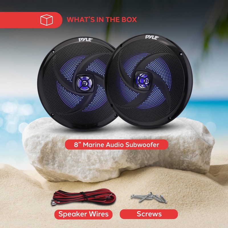 - 2-WAY MARINE SPEAKERS – Enjoy crisp, full-range stereo sound with these 8" waterproof marine speakers. Built for durability and quality performance, they offer 160 watts of RMS power, making them suitable for boats, watercraft, and off-road vehicles,