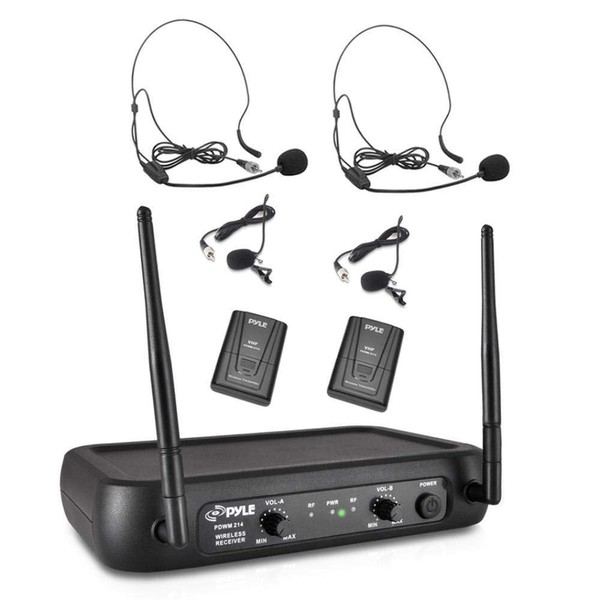 Pyle Pro Bodypacks, Lavaliers, Headsets VHF Wireless Microphone System (2 Pack)