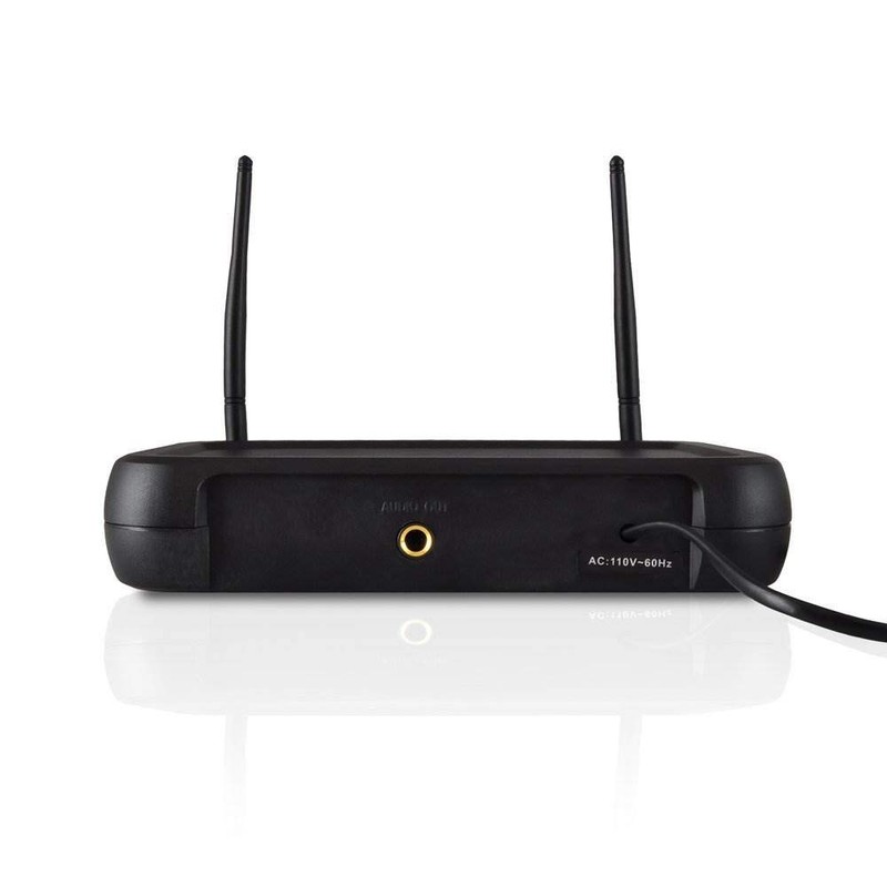• Includes: 1 receiver, 2 body-pack transmitters, 2 Lavalier microphones, 2 headset microphones, and 1, 0.25-inch audio connection cable