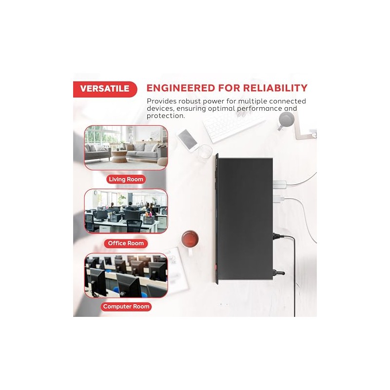 - PROTECTS YOUR DEVICES: Features triple mode varistor surge and spike protection that protects your devices from noise interference, voltage fluctuations, and electrical surges. It can also increase the longevity of your connected components
