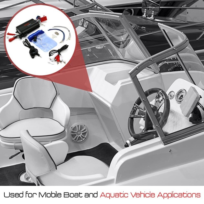 • WORKS TO ALL DEVICES: This powerful multi 4-channel marine and car amplifier can immediately connect to all of your favorite gadgets such phone, iPod, iPhone, android, tablet and can be used for boat or aquatic vehicle application or in your car.