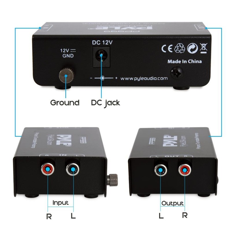 • SIMPLE PLUG & PLAY: This mini preamp has stereo RCA inputs and stereo RCA outputs. Connect the turntable to the RCA inputs and ground. Then, connect the amplifier receiver to the RCA outputs