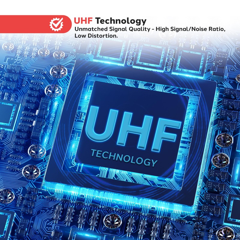 - UHF TECHNOLOGY: Experience top-notch audio transmission with wireless UHF signal, delivering clear, distortion-free vocals up to 165 feet away. Ideal for conferences, broadcasting, and presentations, ensuring crisp sound reproduction.