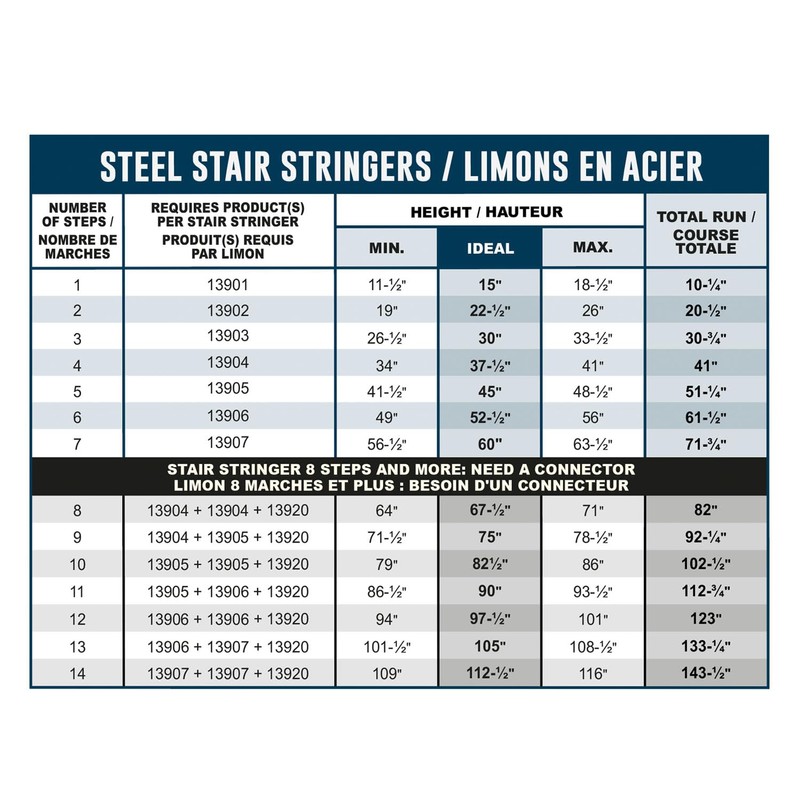 - Treads of 9-1/16-inch - risers of 7-1/2-inch