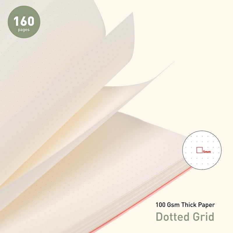 - The PYNEX A5 dot notebook is a handy and portable writing utensil. It fits easily in bags or backpacks. With 80 sheets (160 pages), it offers enough space for notes, sketches and bullet journaling. Whether you are looking for an A5 spiral bound dot notebook or a handy companion for your bullet journal, this notebook meets your needs.
