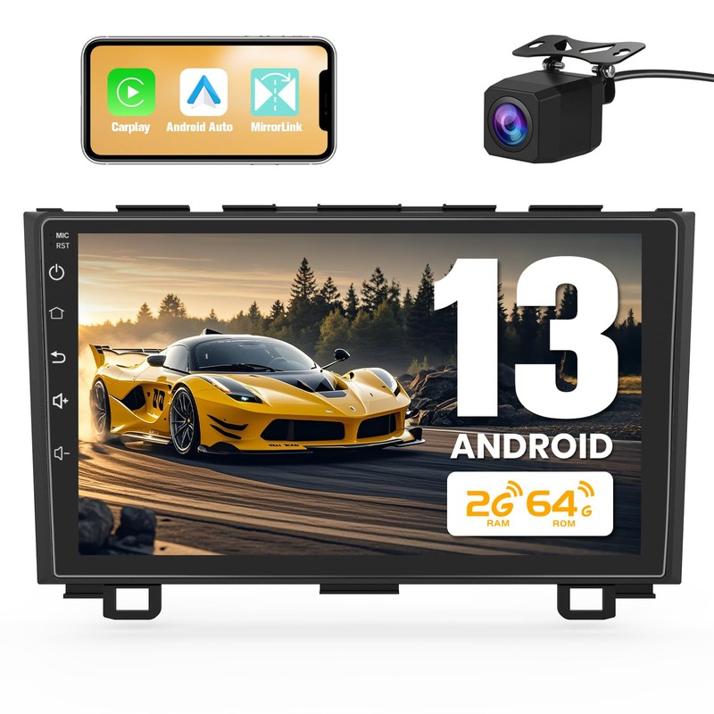 • ✅Android 13 Touchscreen for HONDA CRV (2007-2011) : Equipped with the latest Android 13 operating system that guarantees maximum security, customization, and compatibility with over 3 million apps on Google Play. The combination of 2GBand 64GB allows you to run multiple apps simultaneously without lag. Bluetooth + Wi-Fi: Stream music via Bluetooth while downloading updates via Wi-Fi. Transform your dashboard into a smart entertainment center!