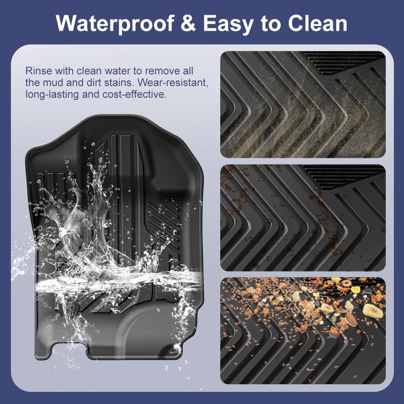 - 【Long-Lasting Durability & Comfortable Underfoot】Engineered for strength and flexibility, our TPE rubber floor mats are thicker and more resilient than many standard options. They withstand daily wear, deformation, and cracking—even in extreme temperatures—while maintaining their shape and structure over time. The soft, cushioned surface also delivers a comfortable feel underfoot for everyday driving.