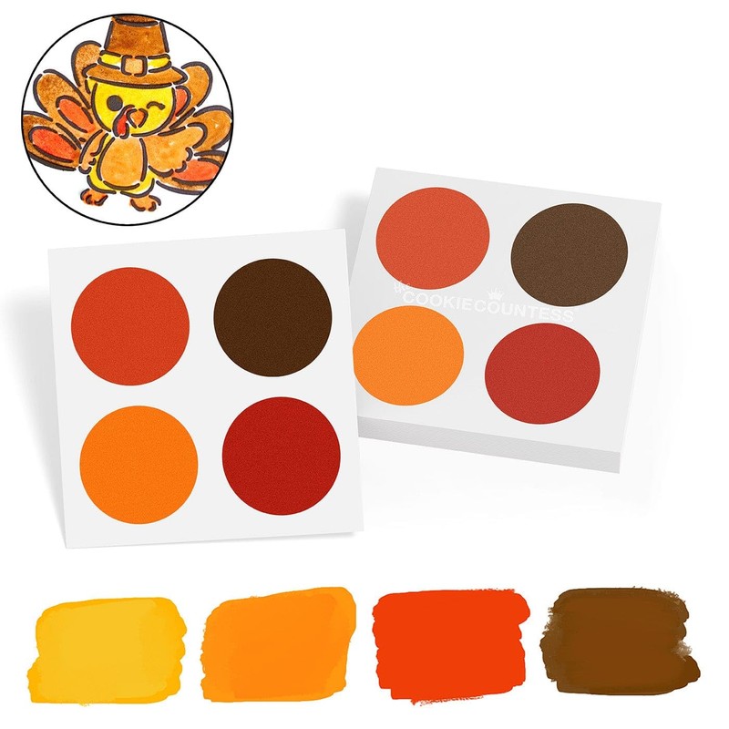 - Edible paint in 4 colors: golden yellow, burnt orange, warm red, and rich brown.