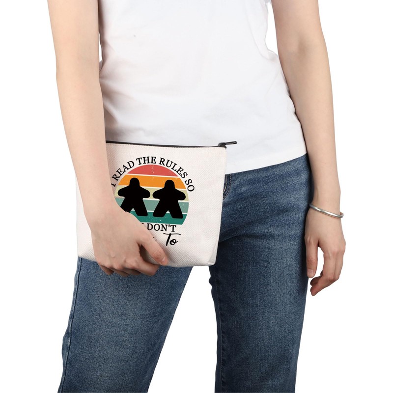 PYOUL Board Game Inspired Gift I Read The Rules So You Don't Have To Makeup Bag Board Game Fan Cosmetic Bag Game Merch, beige