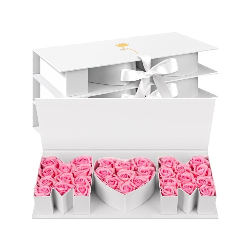 PYQTH 4 Pack Empty Mom Box for Flowers Mothers Day Flower Gift Boxes Thicker Letter Shaped Gift Box Fillable Chocolate Candy Packaging Boxes for Mother's Day Birthday (White)