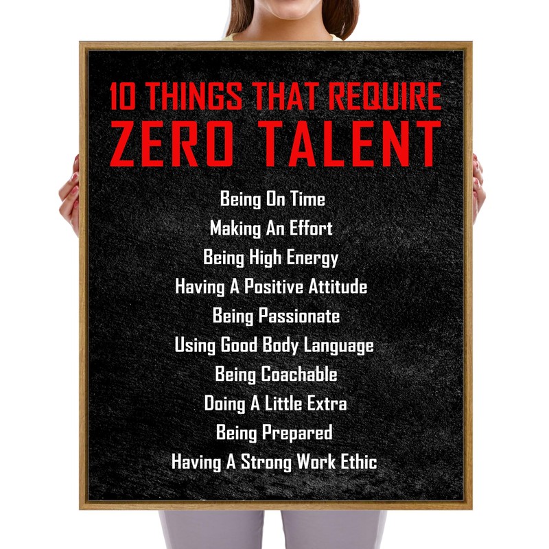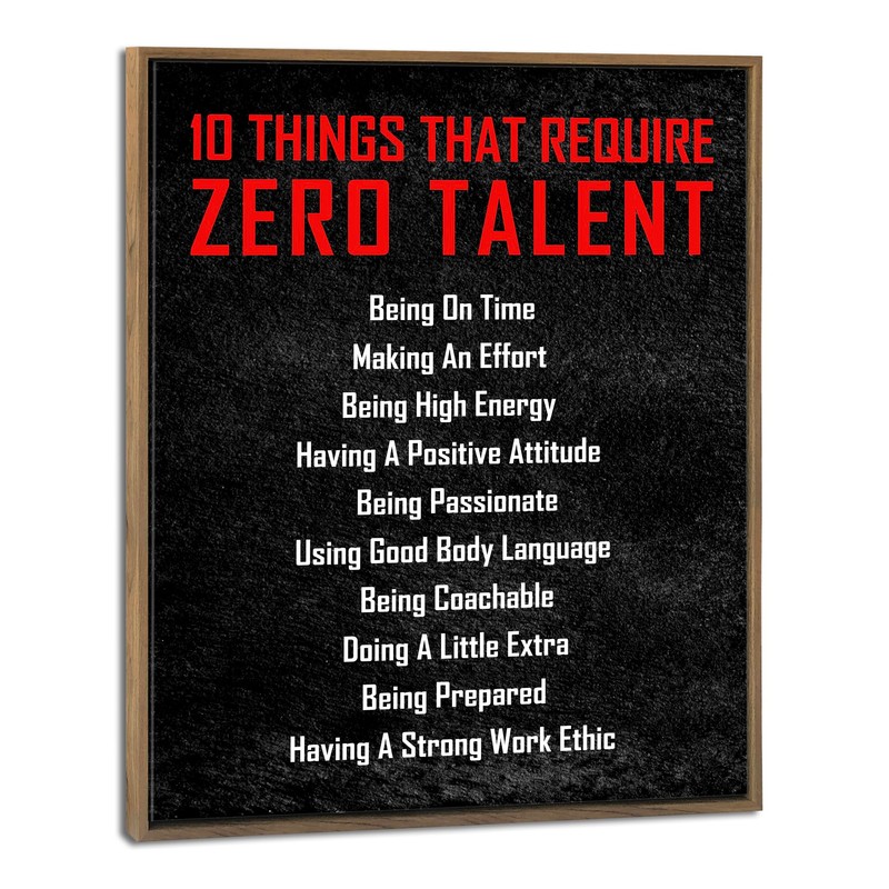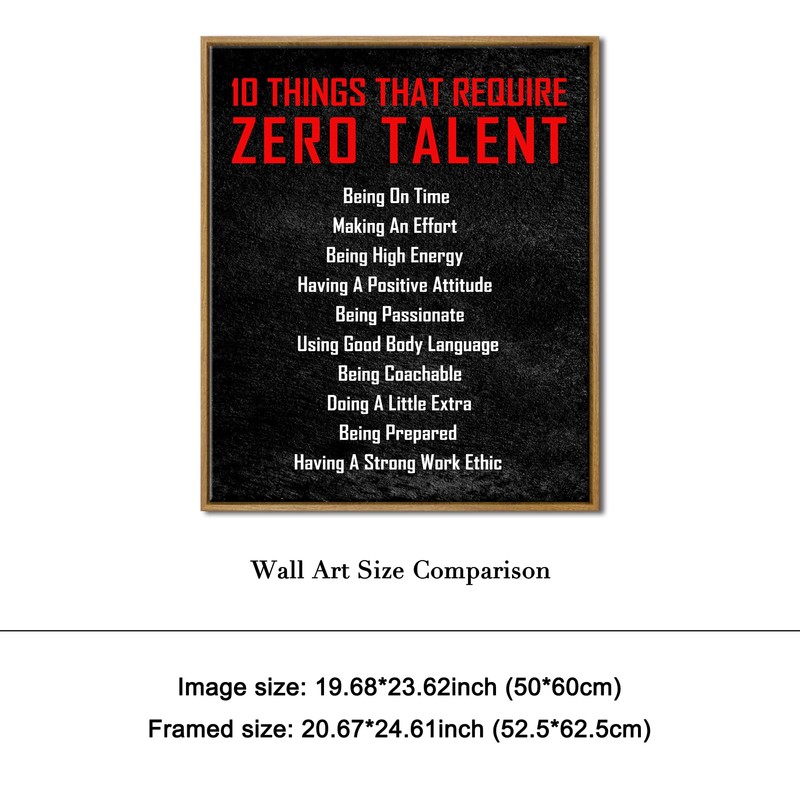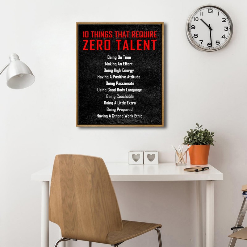 Pyradecor Large Framed Inspirational Poster Canvas Prints Motivational 10 Things That Require Zero Talent Office Positive Quotes for Classroom Home Decorations