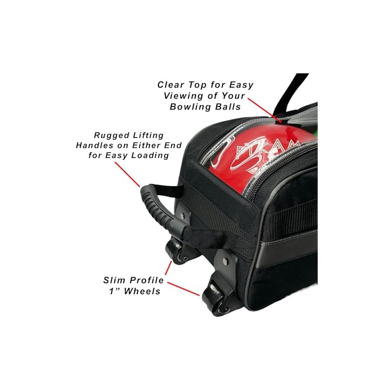 - Versatile Extras: Features a heavy-duty Denier tow handle, adjustable tow strap, clear top for quick ball identification, and four universal clips for optional storage bag attachment (storage bag not included), ensuring versatility and functionality on the lanes. Lightweight construction and compact dimensions make it ideal for travel, providing convenience and portability for bowlers on the go.