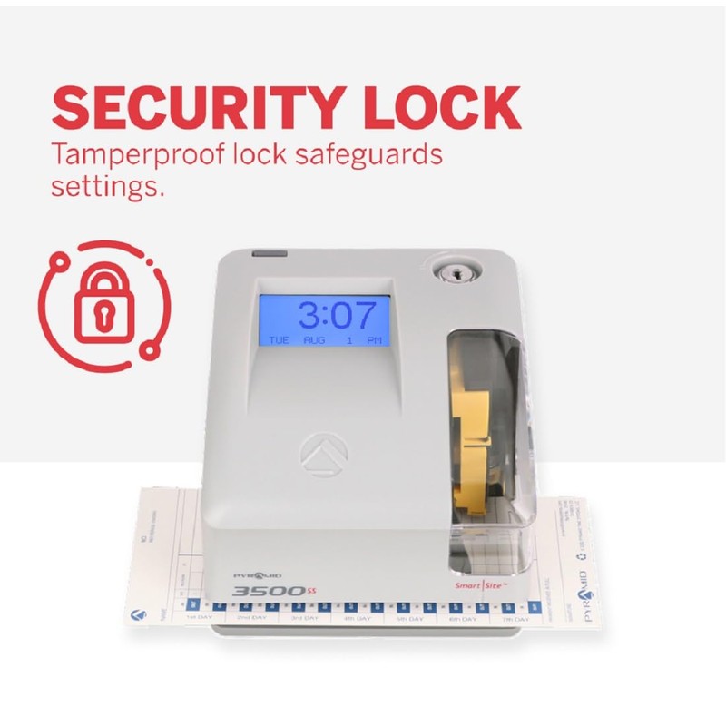 Pyramid Time Systems - Employment Time Clock & Document Stamp [3500ss] with Smart site Alignment, Kit Includes: Punch Time Clock, 25 Time Cards, 1 Ribbon & 2 Security Keys, 3500 Replacement