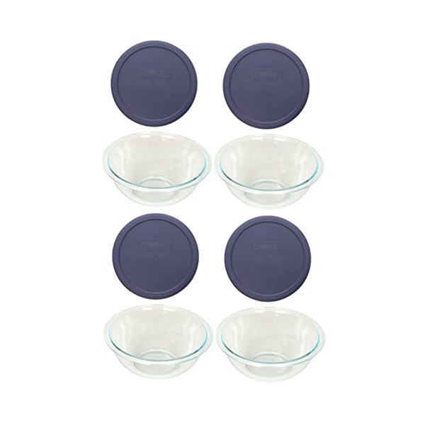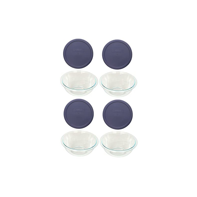 - Included: (4) Pyrex 323 1.5qt Glass Mixing Bowl, & (4) 323-PC 1.5qt/1.4L Blue Mixing Bowl Lid (4-Pack)