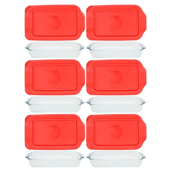 Pyrex (6) 234 4qt Basics Glass Baking Dishes & (6) 234-PC Red Plastic Lids