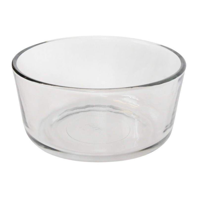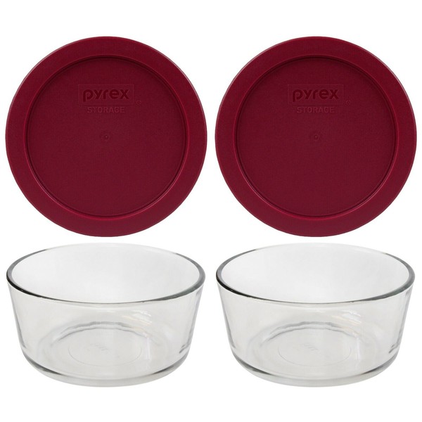Pyrex 7201 4-Cup Clear Round Glass Food Storage Bowl w/ 7201-PC 4-Cup Sangria Red Lid Cover (2-Pack)