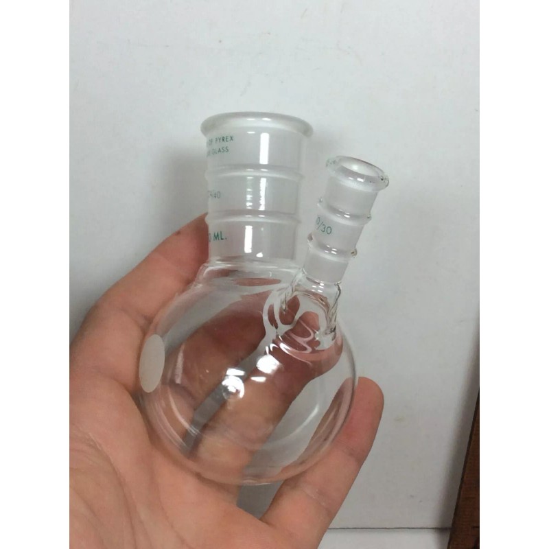 PYREX GLASS Vtg NOS Round-Bottom Boiling Flask 24/40 & 10/30 2 Port Ground Glass Joint 100ml