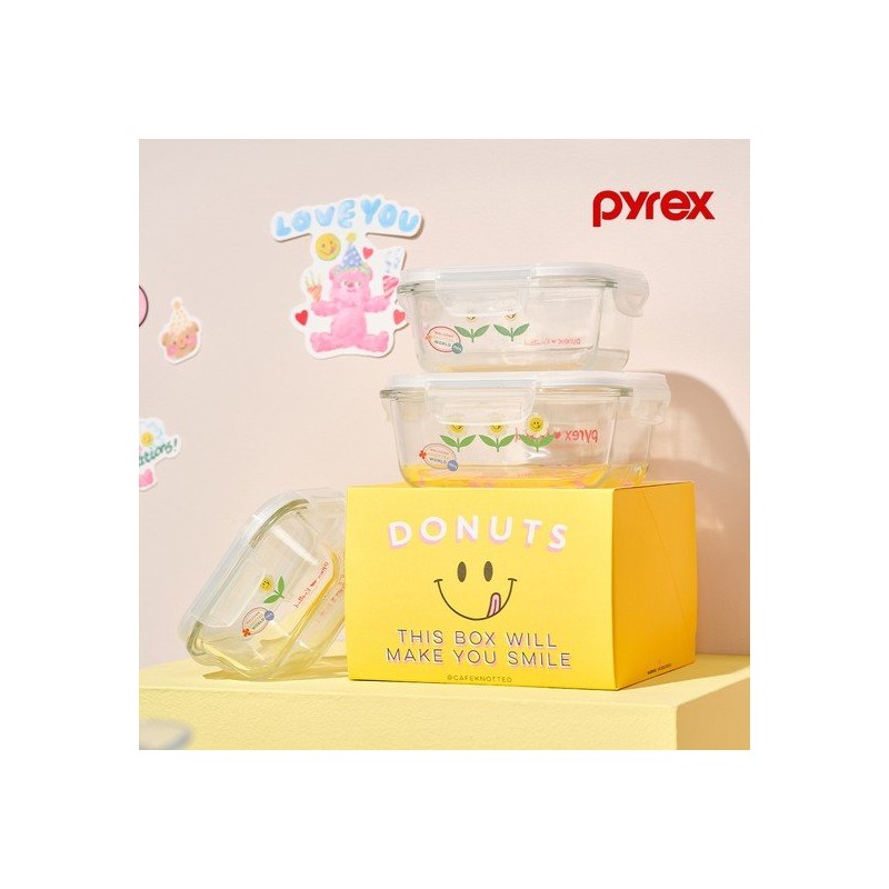 Pyrex Noted Glass Glass Airtight Container 4 Side Dish Container Square 510ml / 파이렉스 노티드 글라스 유리 밀폐용기 4면 반찬통 정사각 510ml