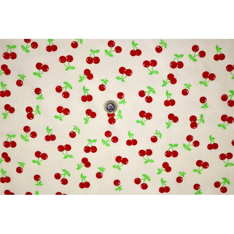Pyrhan Cherries Polycotton Prints | 45 Inch Wide Dress Craft Fabric Material by The Metre | Floral Polycotton Print Used in Sewing Kit and Accessories-Quilting Fabric (Cream)