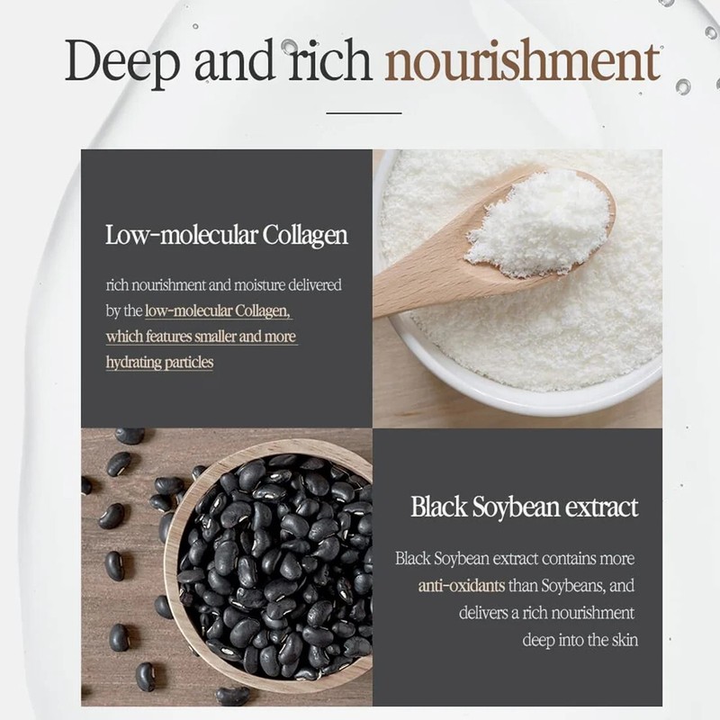 • Rich in black soybean extract (containing Vitamin E and antioxidants) to deliver intense nourishment for bright and healthy skin