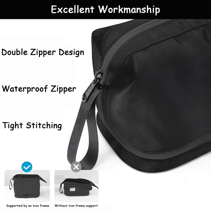 - Stable shape: thanks to the metal bracket on the opening, the wash bag is very stable and comfortable. Even if the luggage is pushed around by the airlines, the wash bag can withstand the elements. The wide opening makes it easy to access the items