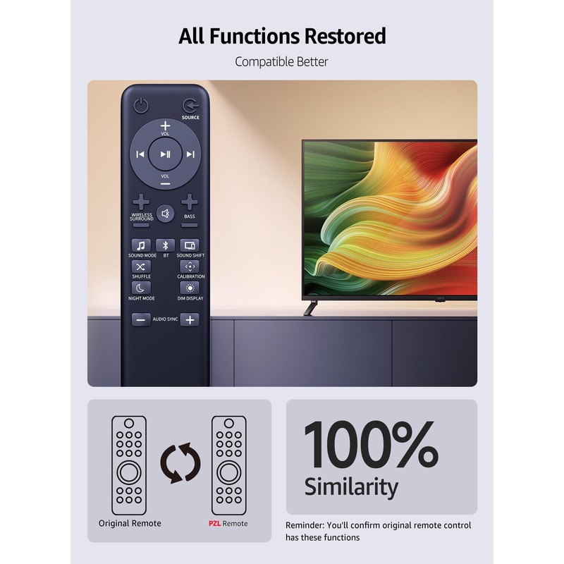- ✔️✔️【High Performance】With the newly upgraded smart chips, PZL remote for Soundbar have a good transmission on long distance, precisely control far from 8 meters/26 feet. The fastest response takes less than 0.2 seconds to your soundbar, and it supports over 160,000 clicks via approved tests.