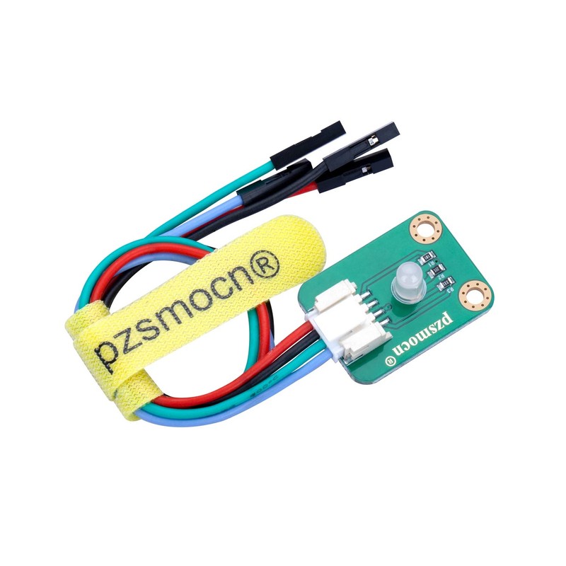 - Onboard F5-full-color RGB foggy common cathode LED components, connect the module to the PWM port of the microcontroller, and connect "-" to GND. By adjusting the 3 PWM values, the color of the LED light can be changed.