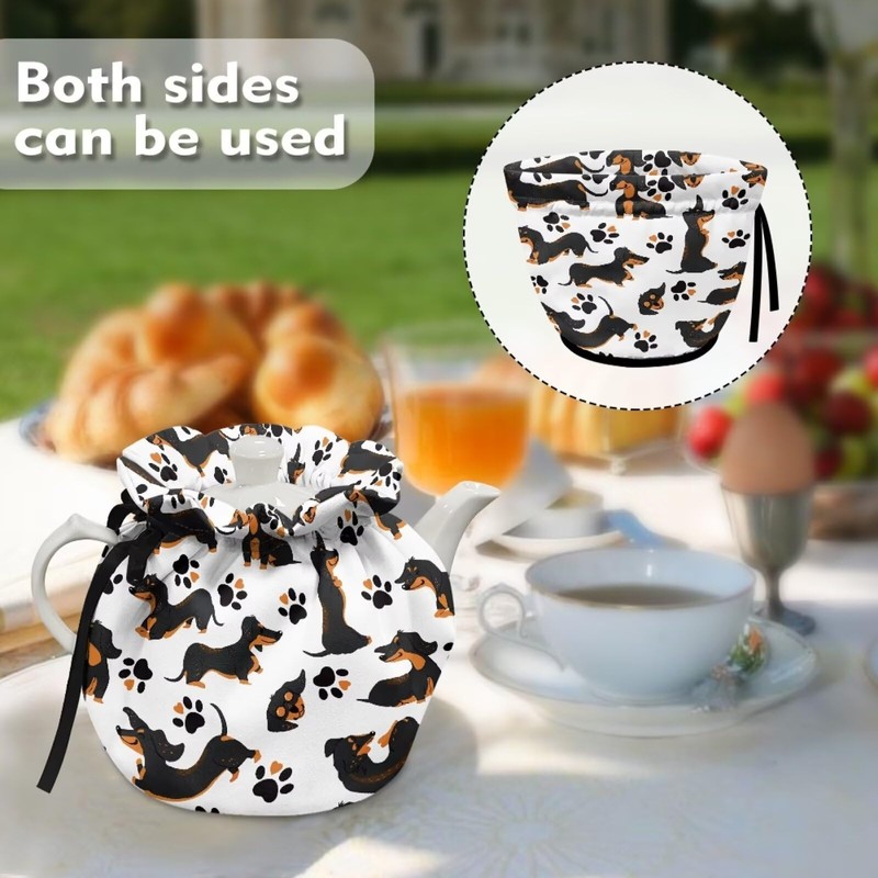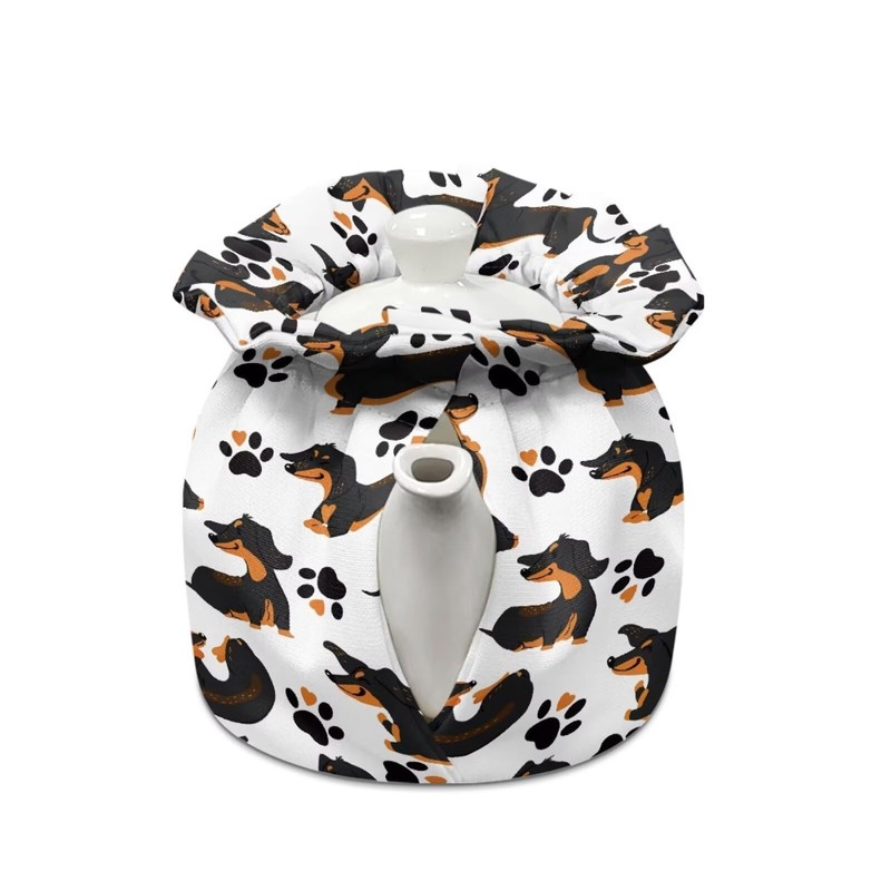 Pzuqiu Tea Pots Cozy with Dachshunds Dog Paw Pattern Reusable Tea Kettle Quilt Keep Tea Warm Soft Lightweight Fabric Easy Install Clean