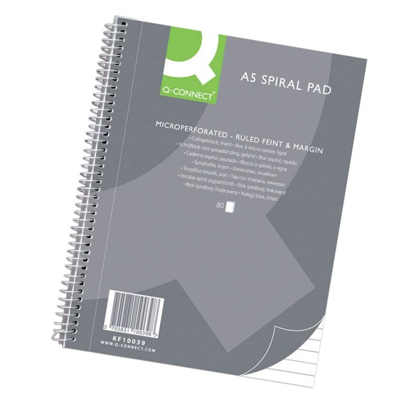 - Q-CONNECT KF10039 A5 Spiral Notebook, Ruled Number of sheets: 80 line spacing: 9 mm. Grammage: 70 g/m²