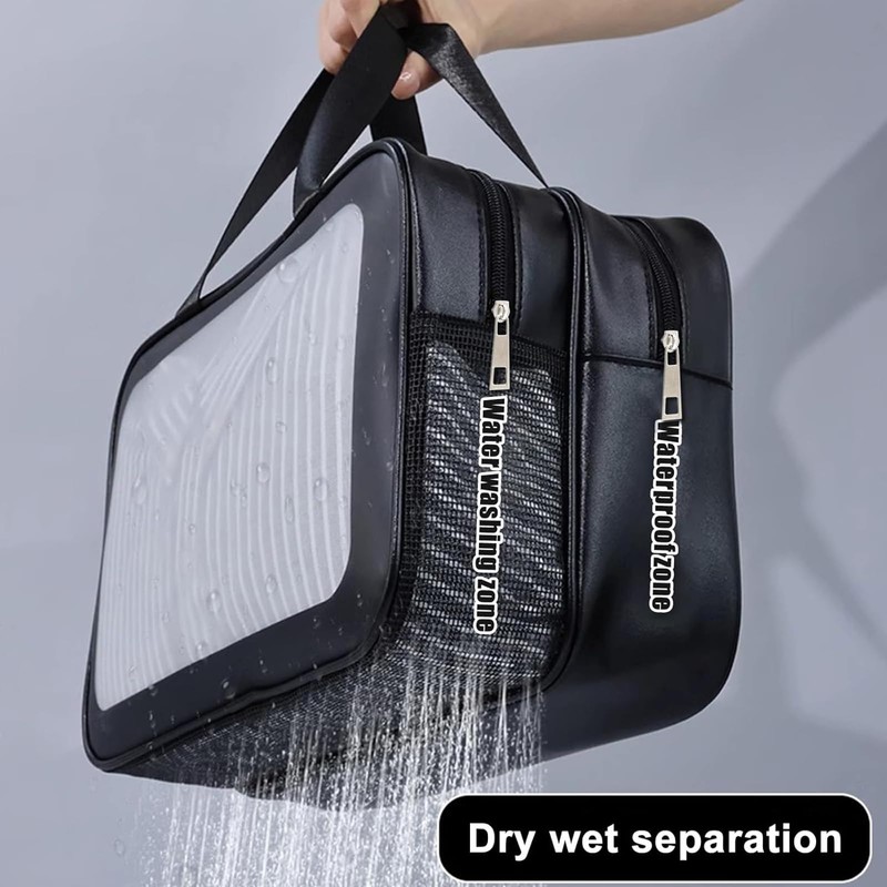 Q-WOOFF Cosmetic bag, toiletry bag, men, dry and wet separation, portable waterproof toiletry bag, make-up bag with large capacity, storage bag, black, simple