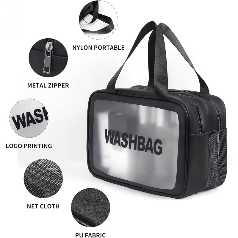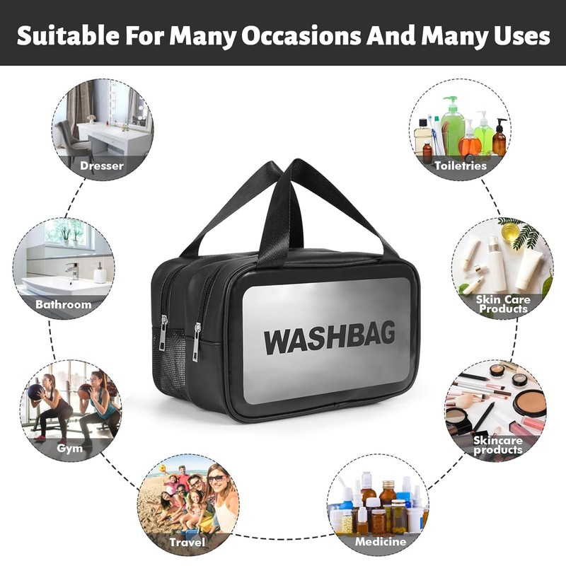 The toiletry bag features a double-sided zipper design with independent space and easy access. It can be placed on the towel rail in the bathroom, suitcase or work bag.