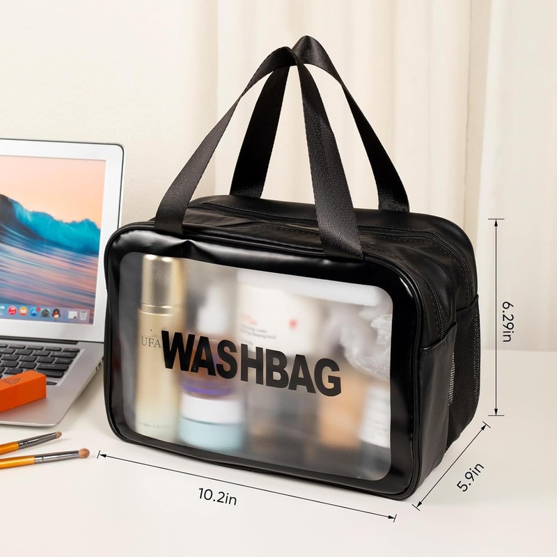 - Thick and thickened material: the cosmetic bag is made of high-quality PU + PVC material, stains can be wiped off immediately. The thickened and widened design details make acting easier and more comfortable. Waterproof material prevents cosmetics and toiletries from getting wet with water. Ideal for swimming and beach occasions. Ideal for travel, swimming, bathing, camping and fitness.